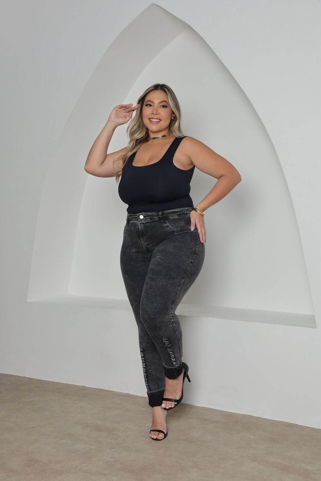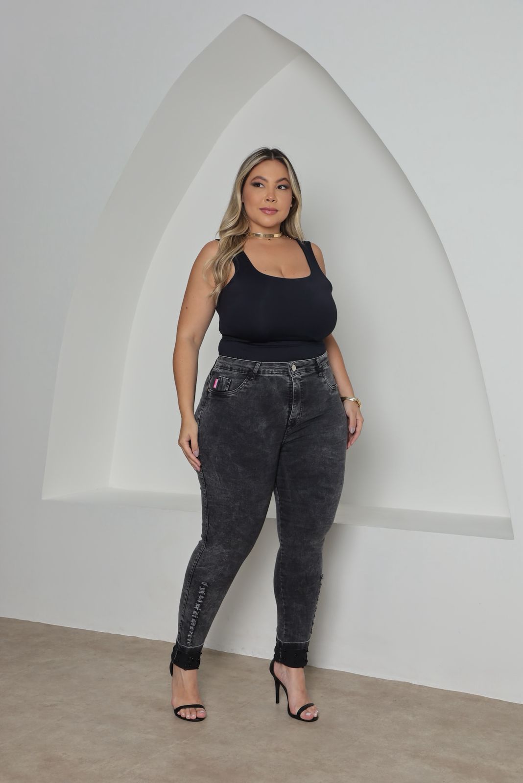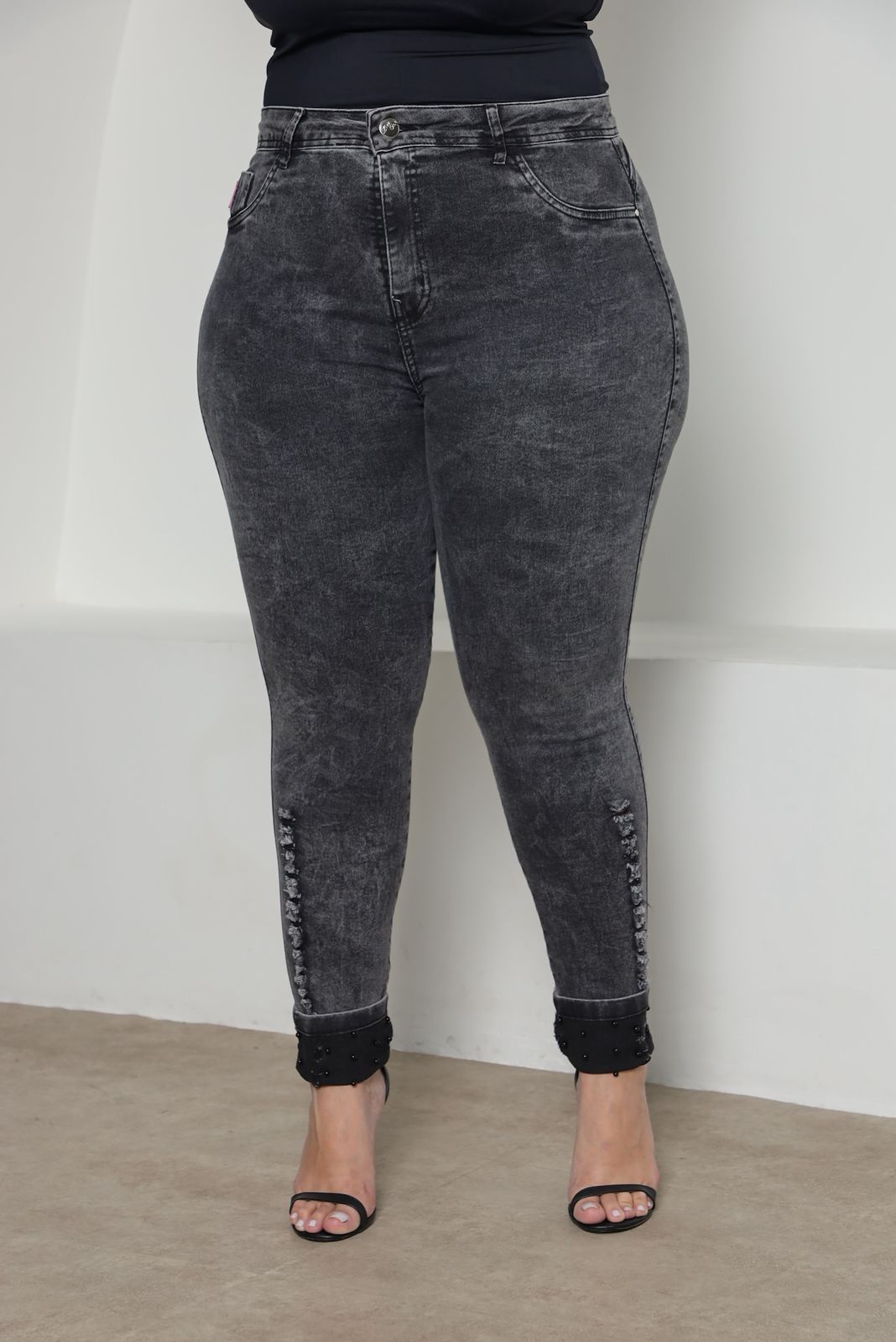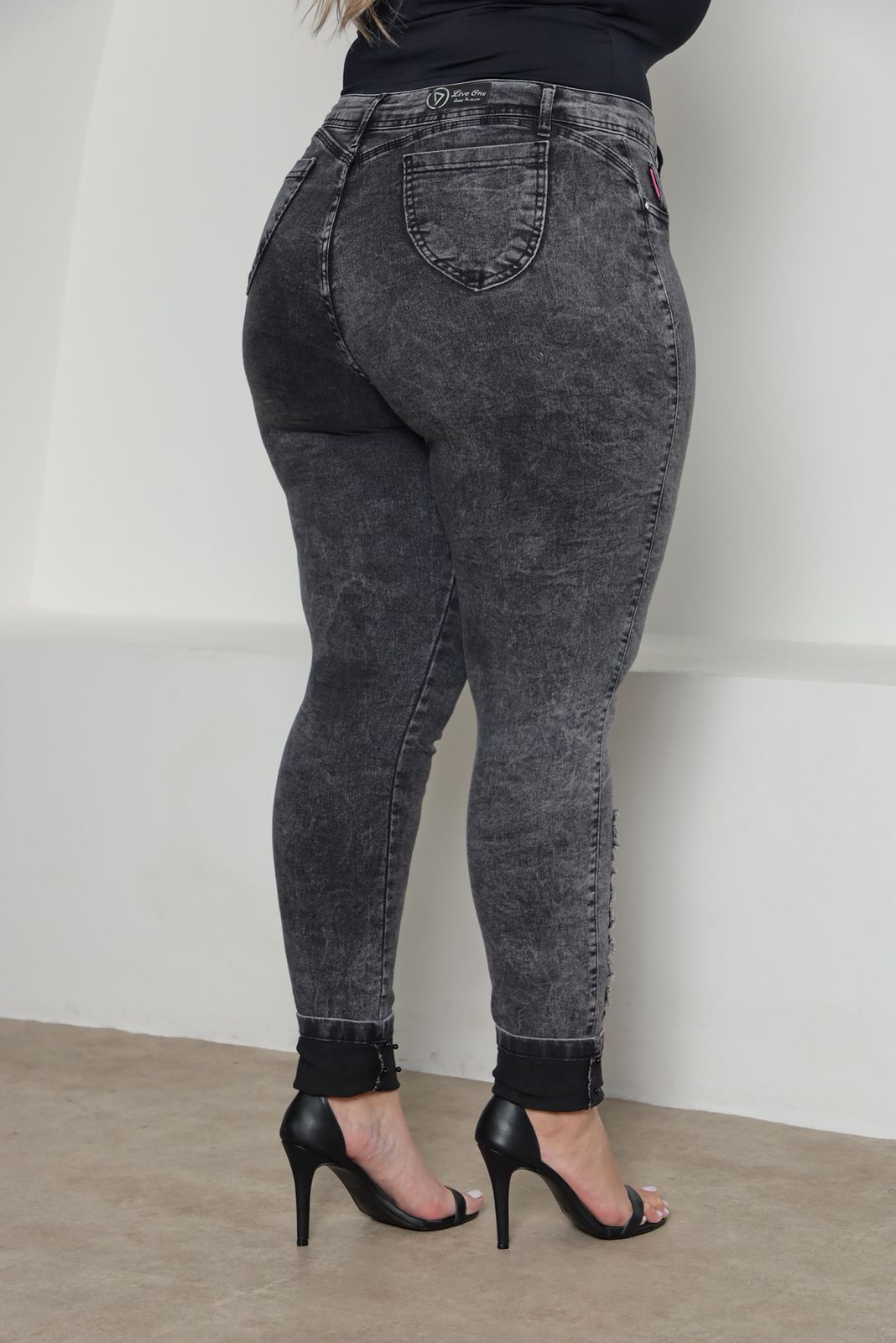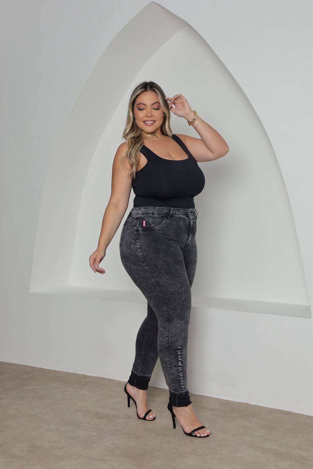 A Calça Jeans Plus Size Marmorizada/Grafite é a peça ideal para quem busca conforto, elegância e um ajuste perfeito. Confeccionada em Lycra de alta qualidade, ela garante um caimento impecável e proporciona elasticidade para valorizar a silhueta feminina de forma natural. A cor grafite traz um toque moderno e sofisticado, tornando a calça versátil e fácil de combinar com diversas peças do seu guarda-roupa.