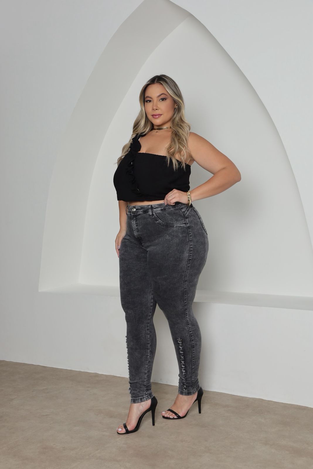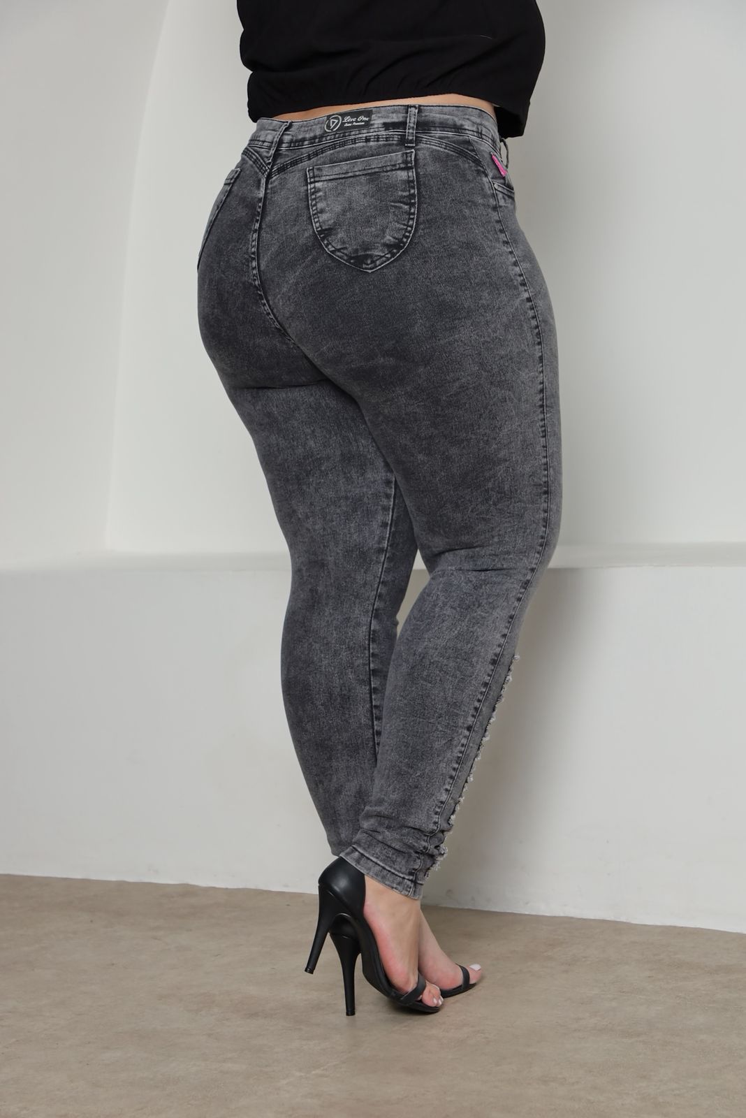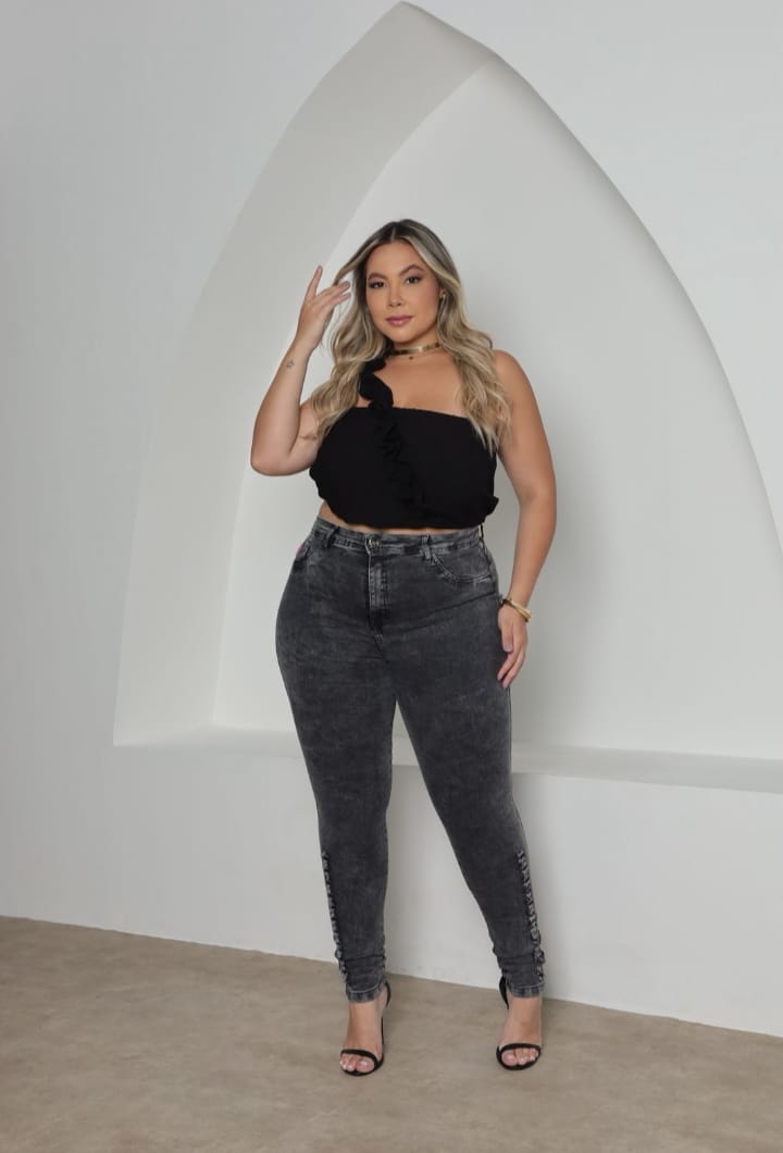 Aposte no estilo urbano com nossa Calça Jeans Feminina grafite com Rasgos. Confeccionada em jeans de alta qualidade, perfeita para quem busca um look moderno e cheio de charme.