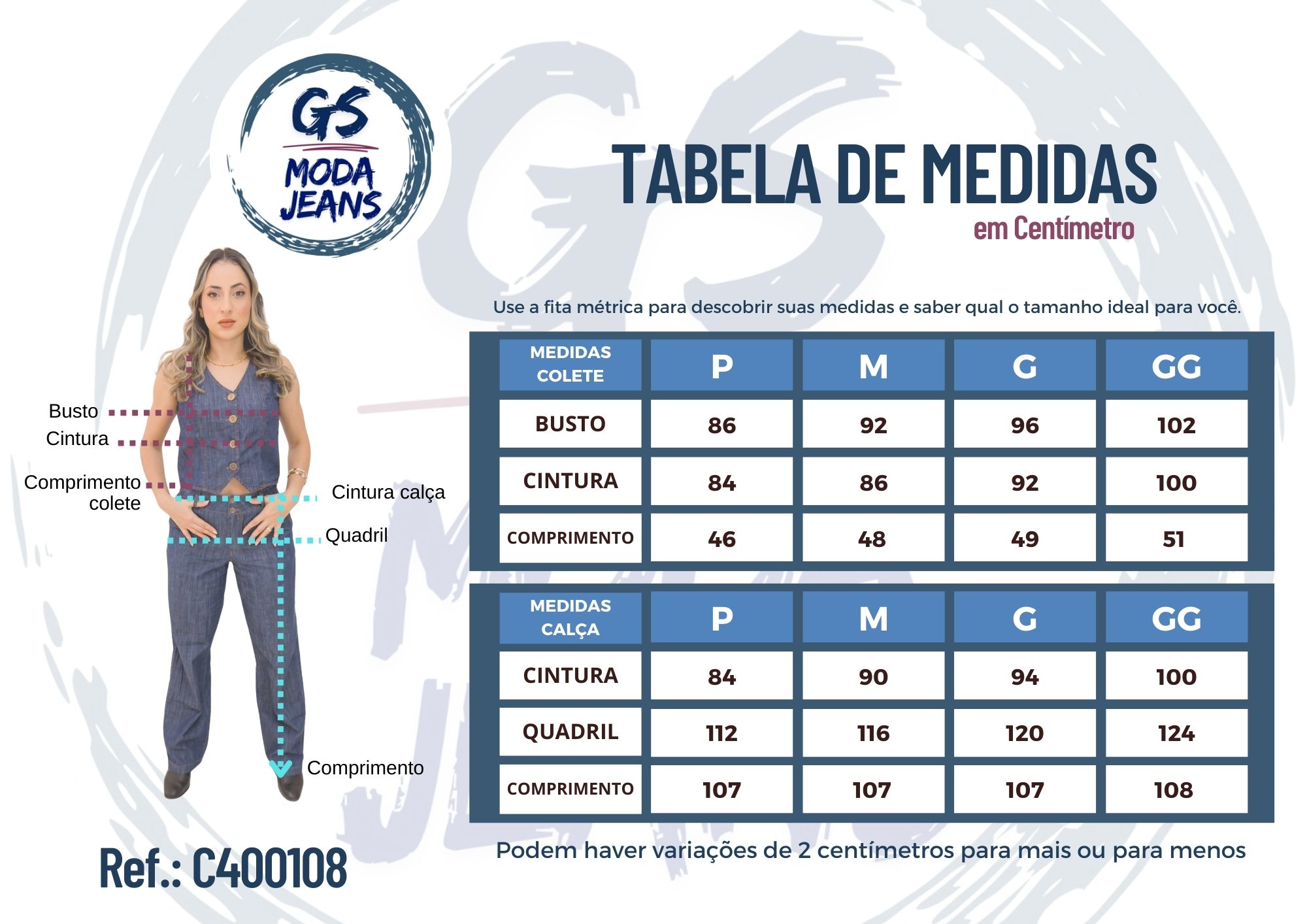 O colete ajustado valoriza a parte superior do corpo com um toque urbano e atual, enquanto a calça pantalona alonga a silhueta com caimento fluido e cintura marcada. É a escolha ideal para quem deseja um look completo, versátil e pronto para diversas ocasiões — do trabalho ao passeio.