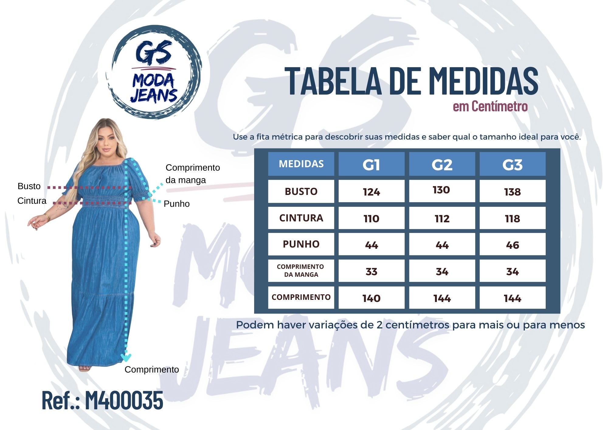 Com modelagem longa e o charme da manga ciganinha, ele traz um toque feminino, romântico e ao mesmo tempo moderno. Feito em jeans leve e estruturado, proporciona o equilíbrio ideal entre caimento fluido e sustentação. A manga ombro a ombro valoriza o colo de forma sutil e elegante, sendo perfeita para composições do dia a dia ou eventos especiais.